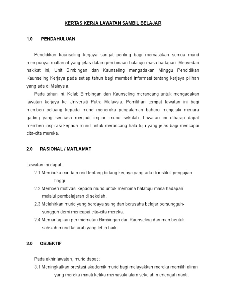Famous Contoh Kertas Kerja Lawatan Sambil Belajar 2022